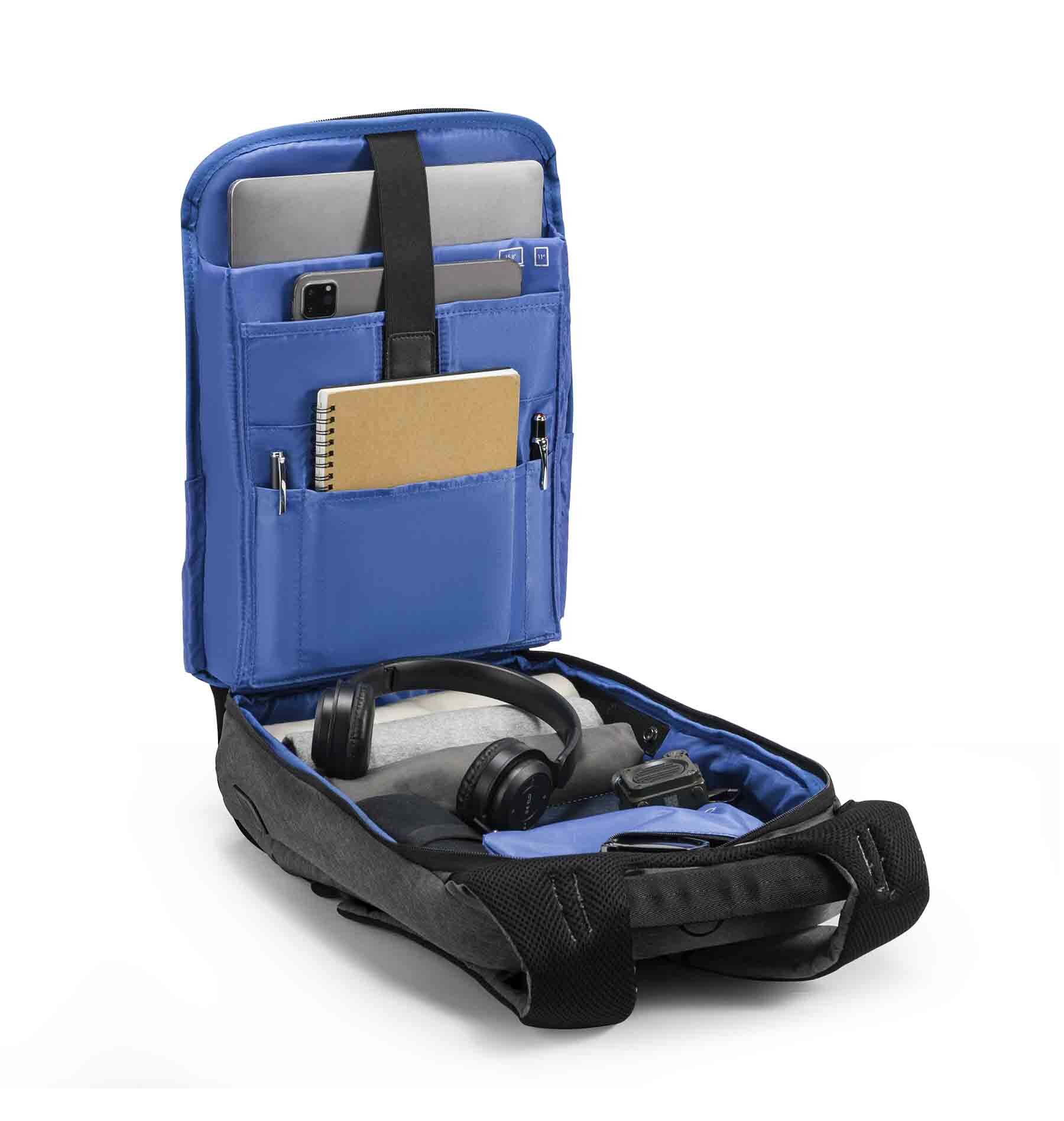 Современный антивор-рюкзак для городских пользователей и путешественников. Оснащён скрытыми молниями, защитой от разрезов и кодовым замком TSA007. Продуманная организация включает отделение для ноутбука до 15,6", секцию для планшета, функциональные внутренние карманы и удобное раскрытие на 180°, упрощающее сборы и досмотр в аэропорту. Износостойкая и водоотталкивающая ткань надёжно защищает вещи, а USB-порт позволяет зарядить телефон в дороге при подключённом powerbank. Мягкая спинка, эргономичные лямки, ремень для крепления на чемодан и светоотражающая полоса обеспечивают комфорт и безопасность в любых условиях. Объем 14,5 л.