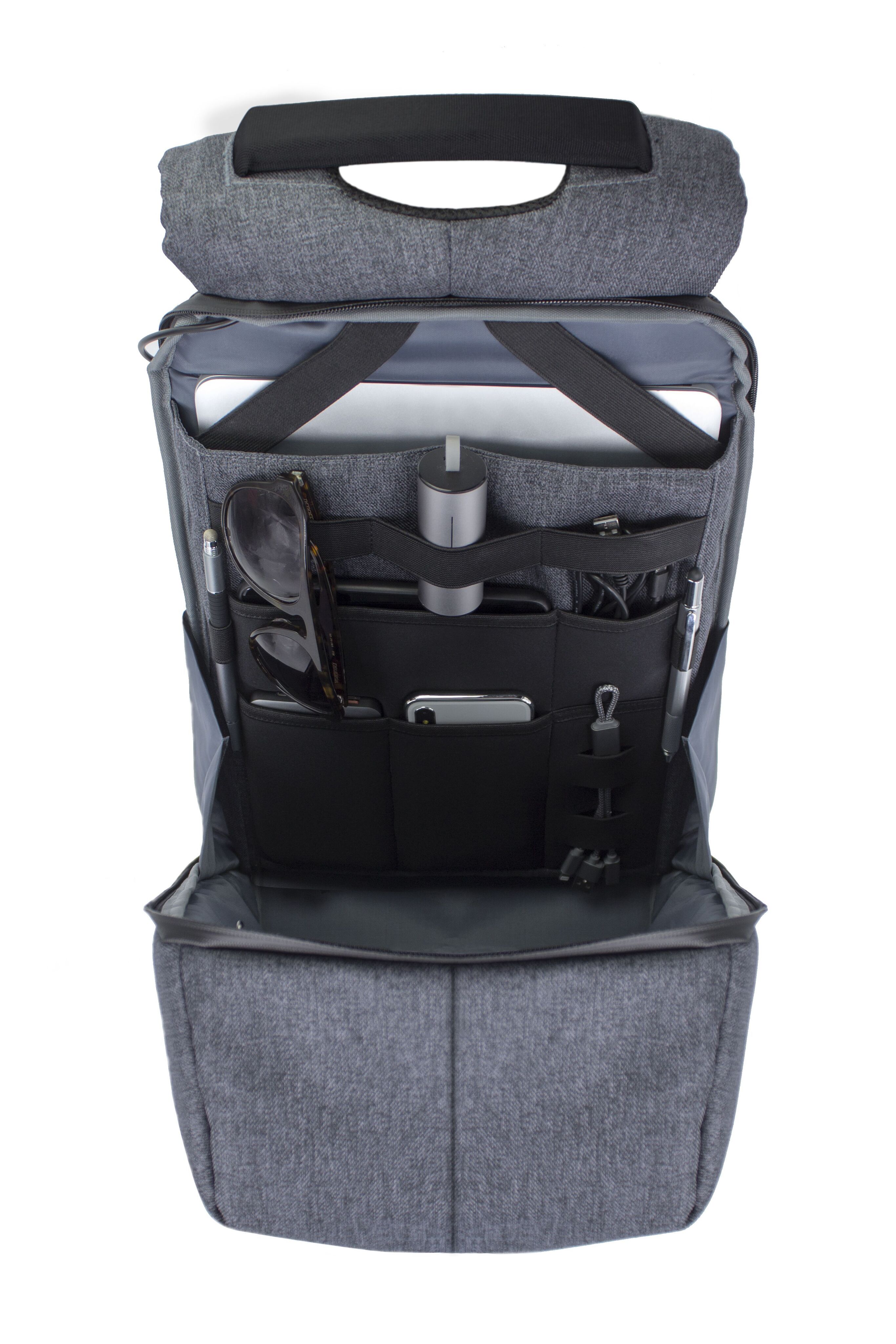 Рюкзак изготовлен из 15 переработанных ♻PET- бутылок (по 500 мл). Оснащён встроенным TSA-замком, скрытым отделенем для паспорта и ремешком, позволяющим пристегнуть рюкзак к любому предмету. Имеет порт USB для подзарядки устройств, отделение для ноутбука, удобный карман для карт, водонепроницаемую молнию, выдвижные боковые карманы, мягкую спинку с вентиляцией, анатомичными лямками и креплением на чемодан, водо- и грязеотталкивающее покрытие со светоотражающими элементами для безопасности в тёмное время суток. Пряжка оснащена встроенной открывалкой для бутылок. Металлическая бирка: эпоксидное покрытие, бирка из искусственной кожи.